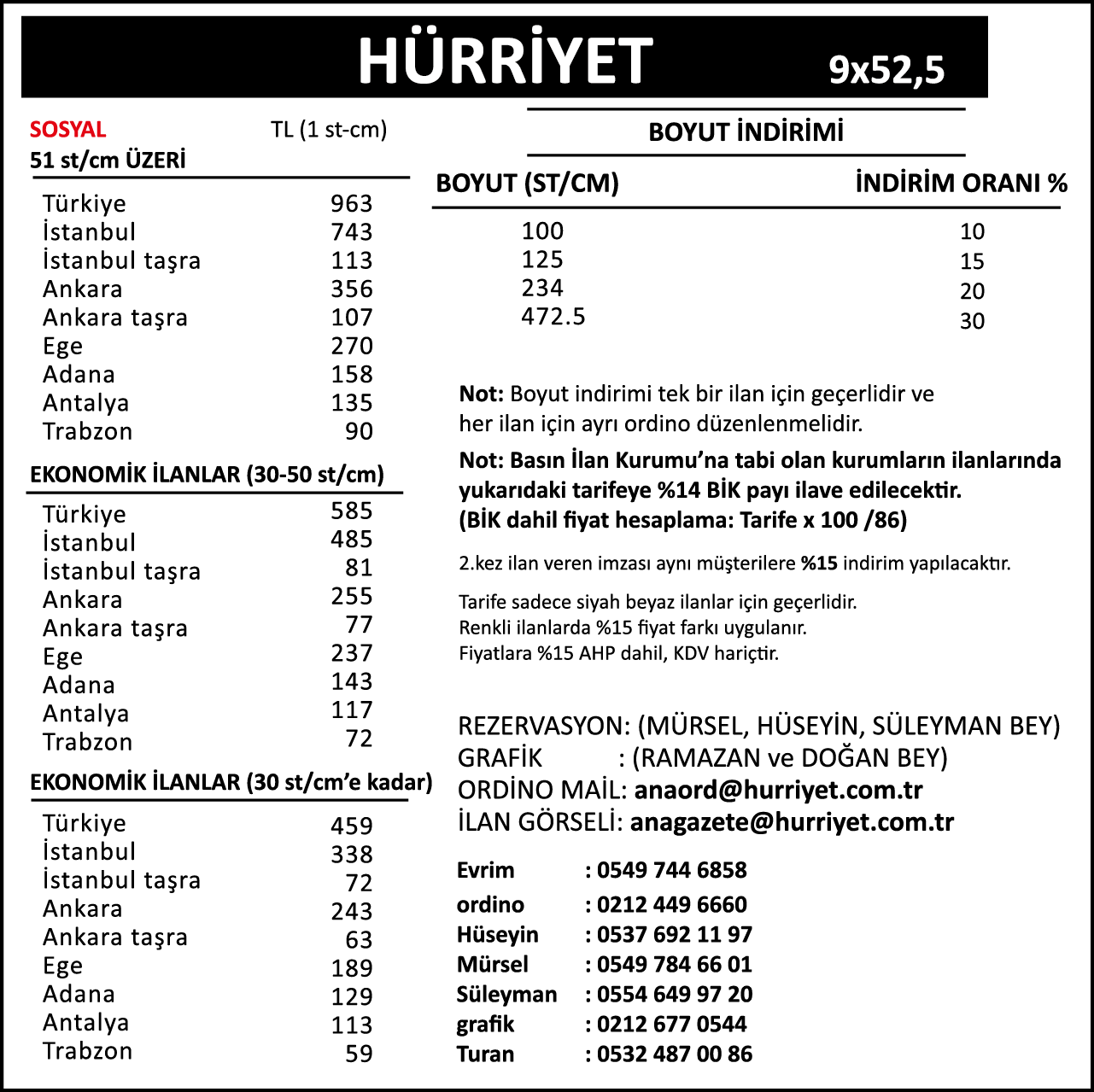 Hürriyet Fiyat Listesi