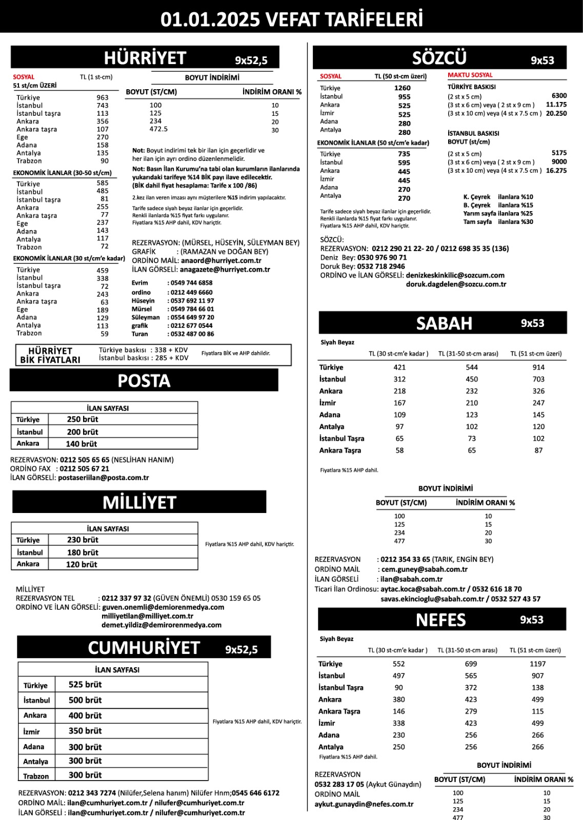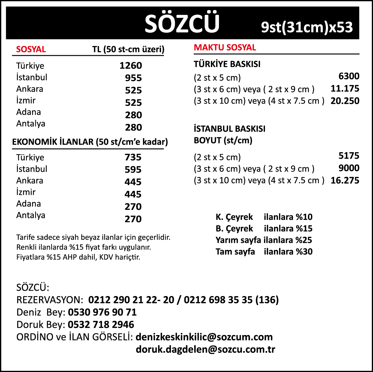Sözcü Fiyat Listesi